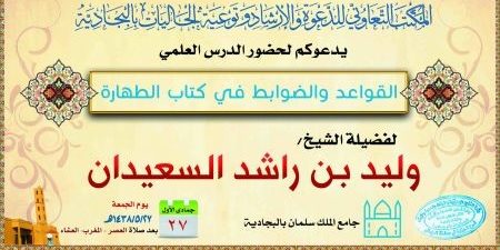 يدعوكم المكتب لحضور درس علمي لفضيلة الشيخ/وليد بن راشد السعيدان