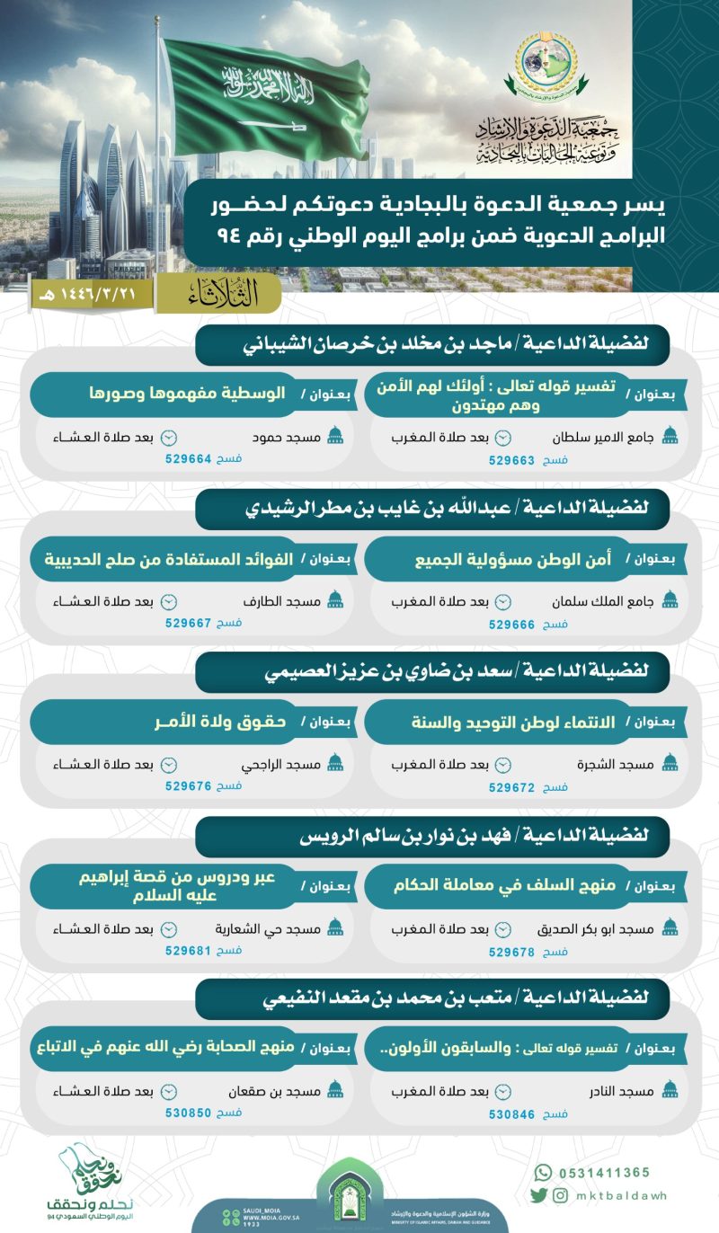 برنامج دعوي لفضيلة الداعية/خالد بن عبدالعزيز بن موزان