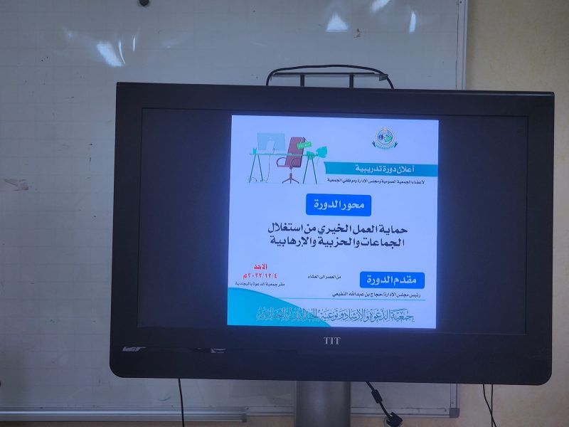 أقامة الجمعية دورة تدريبة بعنوان حماية العمل الخيري من استغلال الجماعات الحزبية والإرهابية