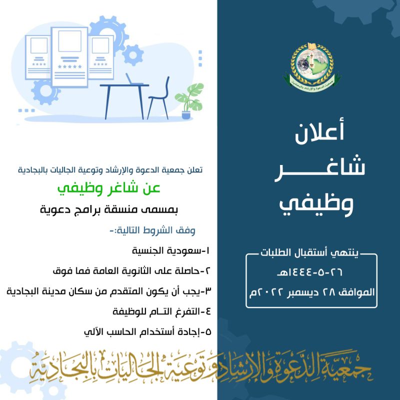 السلام عليكم ورحمة الله وبركاته تعلن جمعية الدعوة بالبجادية عن انطلاق رحلات العمرة المجانية لجميع فئات المجتمع وعلى الراغبين في العمرة او الاستفسار التواصل مع الأرقام الظاهرة في الإعلان اسفله